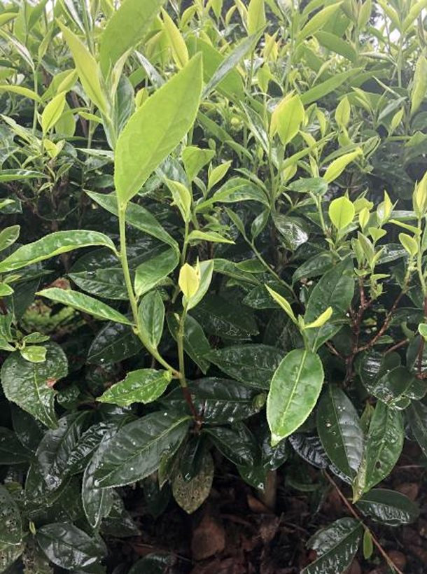 【性狀特征】茶樹無(wú)性系品種之一,葉長(zhǎng)橢圓形,葉色黃綠,有光澤,葉面較平,葉尖漸尖,葉質(zhì)較柔軟,芽葉黃綠色。灌木型,中葉類,樹姿半開展,葉長(zhǎng)9.2cm,葉寬3.3cm,葉面平整葉色黃綠,分枝密度適中,葉著生上斜。3月中旬萌芽,4月中旬開采?;ü陂L(zhǎng)寬為3×31mm?;ò?/span>6-8片,花萼無(wú)毛,抗逆性強(qiáng)。