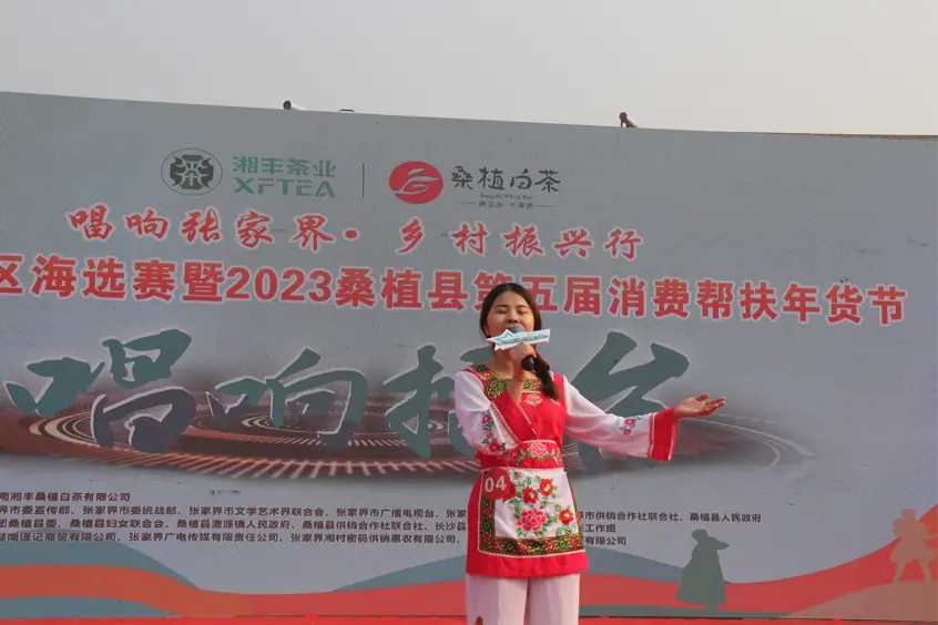 2023 年 1 月 10 日,湘豐茶業(yè)·桑植白茶《唱響擂臺》張家界賽區(qū)海選賽暨 2023 桑植縣第五屆消費幫扶年貨節(jié)活動在桑植縣民歌廣場隆重舉行?!冻懤夼_》是中國首檔定位音樂推介幸福的鄉(xiāng)村綜藝秀,本次活動由桑植縣 23個鄉(xiāng)鎮(zhèn)(每個鄉(xiāng)鎮(zhèn)推舉一位民間歌手代表)采取線下場地擂臺賽的方式,現(xiàn)場專業(yè)評委評判,呈現(xiàn)歌曲產(chǎn)品雙向賦能、推薦家鄉(xiāng)好物,打造幸福鄉(xiāng)村主題歌曲。讓桑植的歌聲越過大山,讓更多人聽到!